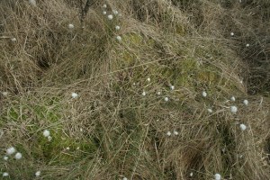 Von den Bultmoosen nutzt Sphag. papillosum die vorjährigen Fruchthalme des Pfeifengrases, um seine bevorzugte Wuchshöhe von 25 cm über Moorwasser zu stabilisieren (or)