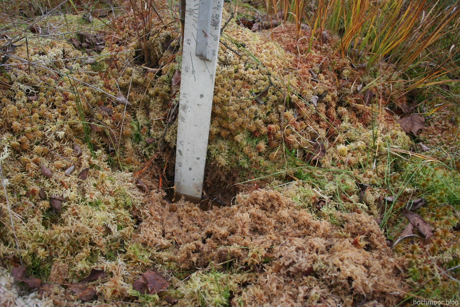 Aufgewühlt fanden wir das dicke Polster aus Torfmoosen in diesem Herbst an einem unserer ältesten Moosbulte, den wir seit zehn Jahren vermessen und mit der Kamera begleiten.